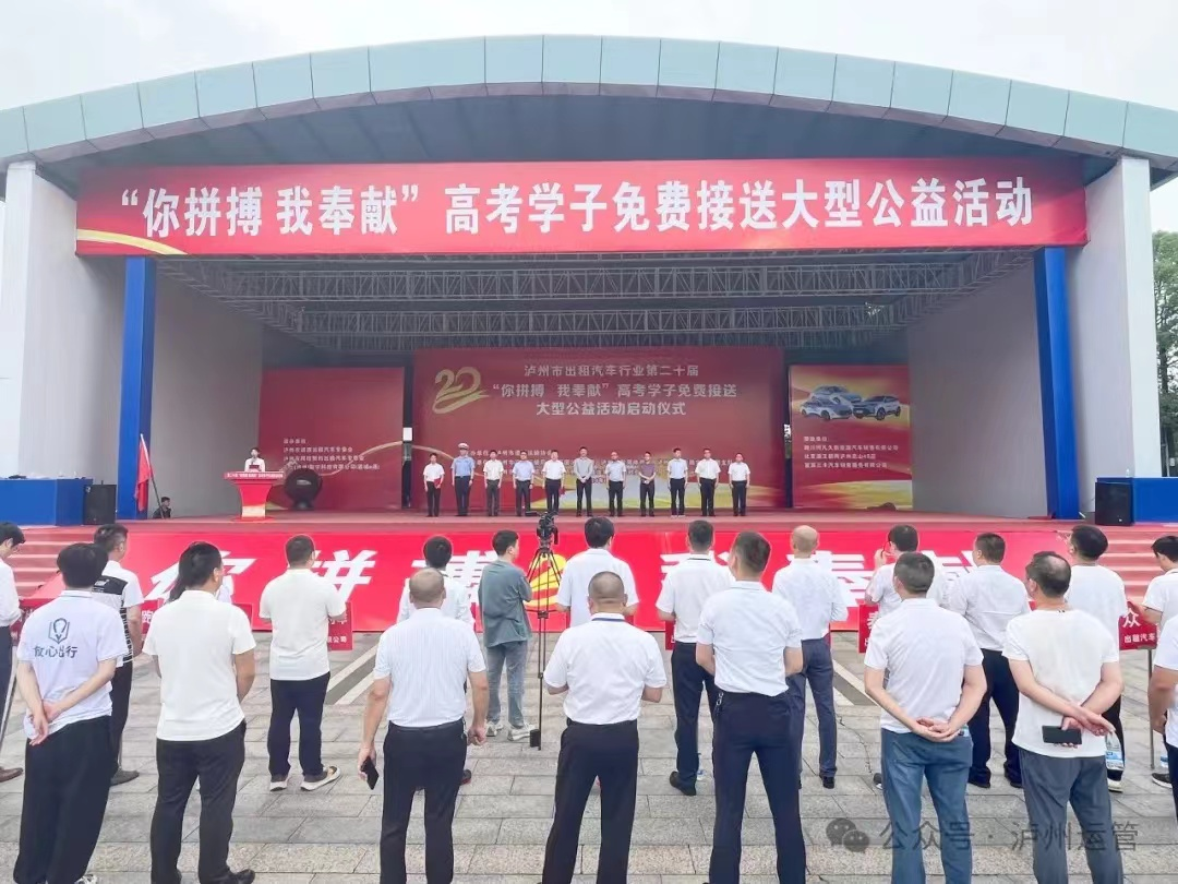 6月5日由瀘州市道路運(yùn)輸協(xié)會承辦的第二十屆“你拼搏、我奉獻(xiàn)”高考學(xué)子免費(fèi)接送公益活動在西南商貿(mào)城五區(qū)舉行啟動儀式,省交通廳、市上有關(guān)領(lǐng)導(dǎo)和瀘州市16家巡游出租汽車公司及網(wǎng)約車公司650輛參加此次送考活動的啟動儀式,隨著市領(lǐng)導(dǎo)宣布活動正式開始,參加活